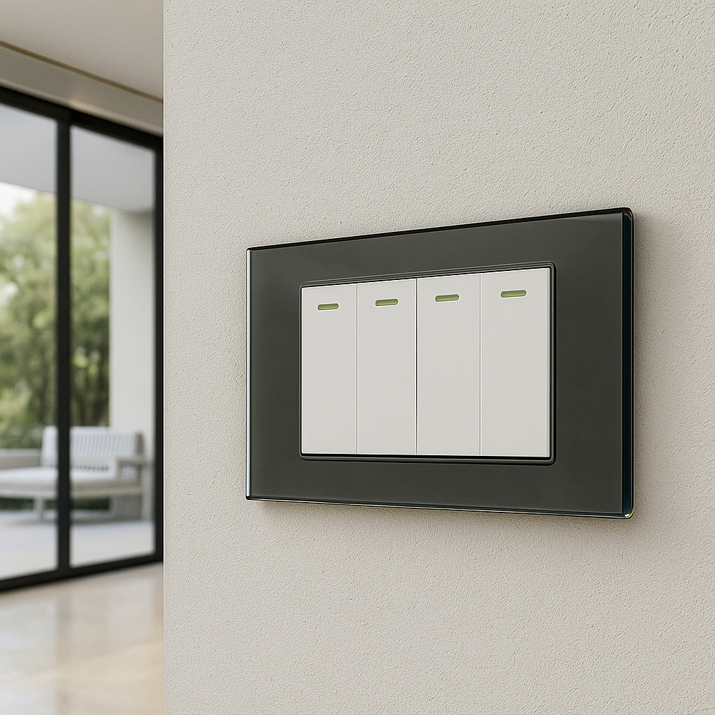 Placca 4 Posti in Vetro Effetto Acciaio – Design “Serie Ginevra”